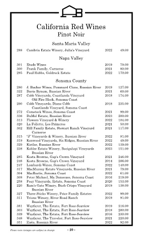 280      J. Bucher Wines, Pommard Clone, Russian River                      2019       127.00