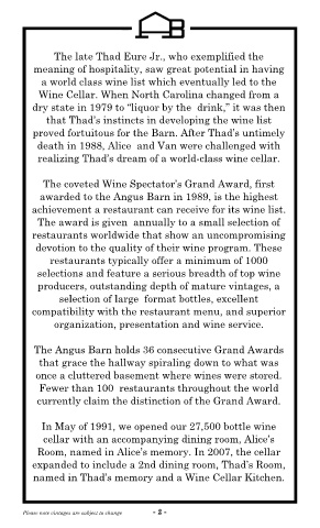 named in Thad’s memory and a Wine Cellar Kitchen.