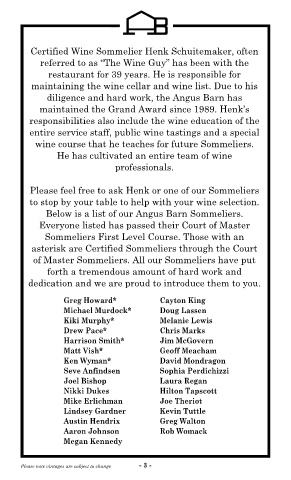 Below is a list of our Angus Barn Sommeliers.