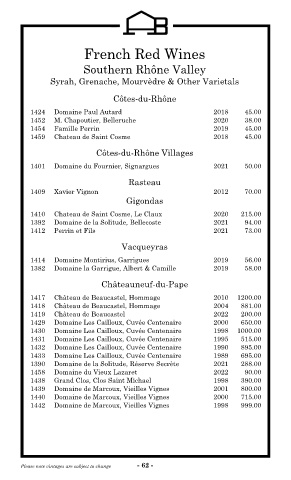 Please note vintages are subject to change - 62 -